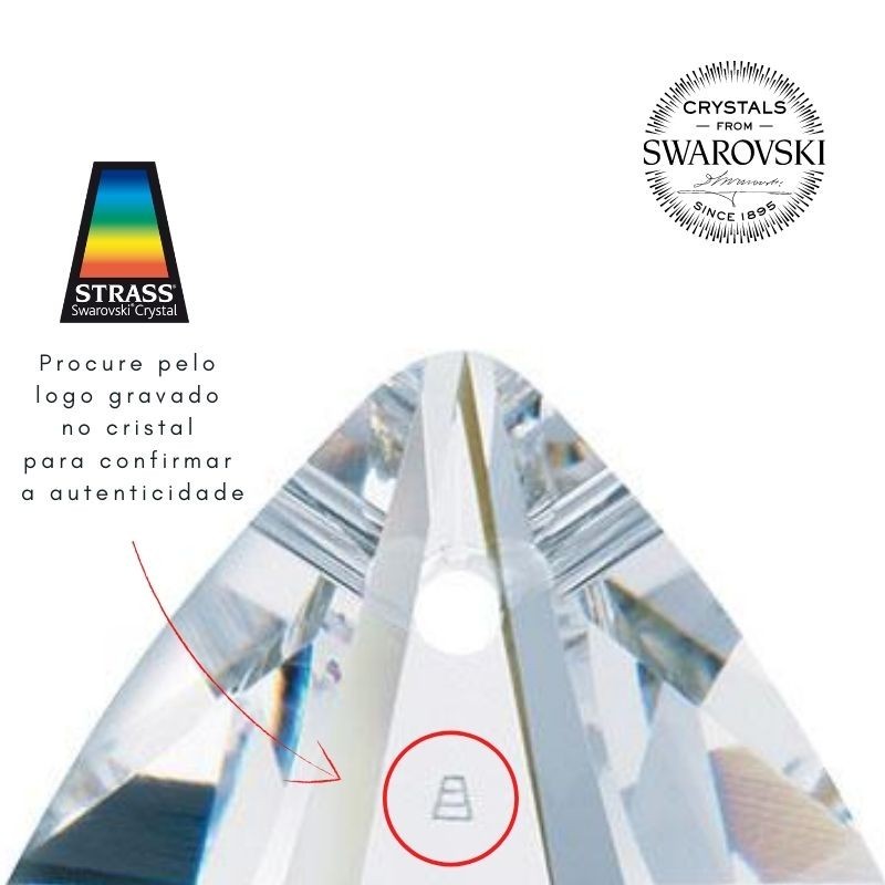 A autenticidade do Cristal Swarovski é comprovada pelo logo gravado no topo do cristal.
