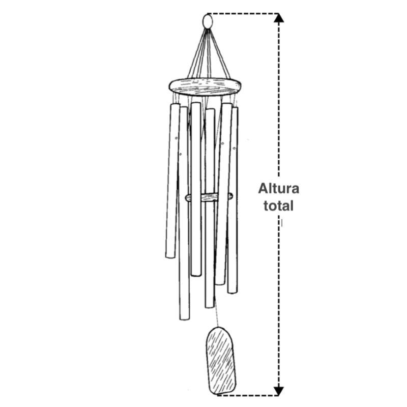 Esse sino é formado por 6 tubos de alumínio e mede 94 cm de altura total.