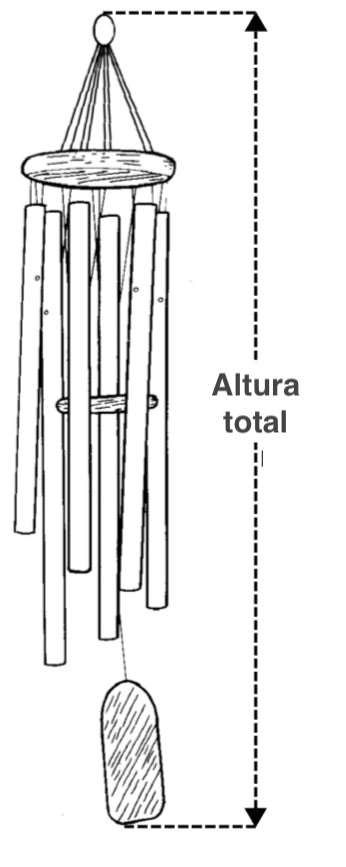 Esse sino é formado por 6 tubos de alumínio e mede 94 cm de altura total.