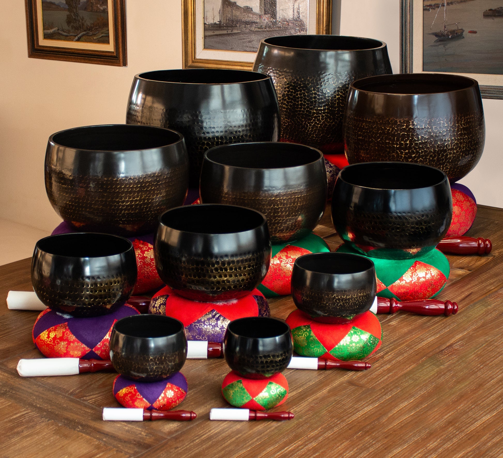 As taças sonoras japonesas são feitas essencialmente em bronze e pintadas com uma laca japonesa chamada Urushi.